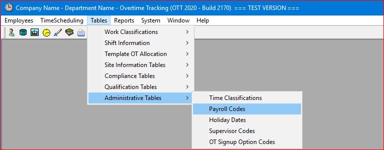 Select the Tables | Administrative Tables | Payroll Codes main menu option.